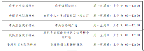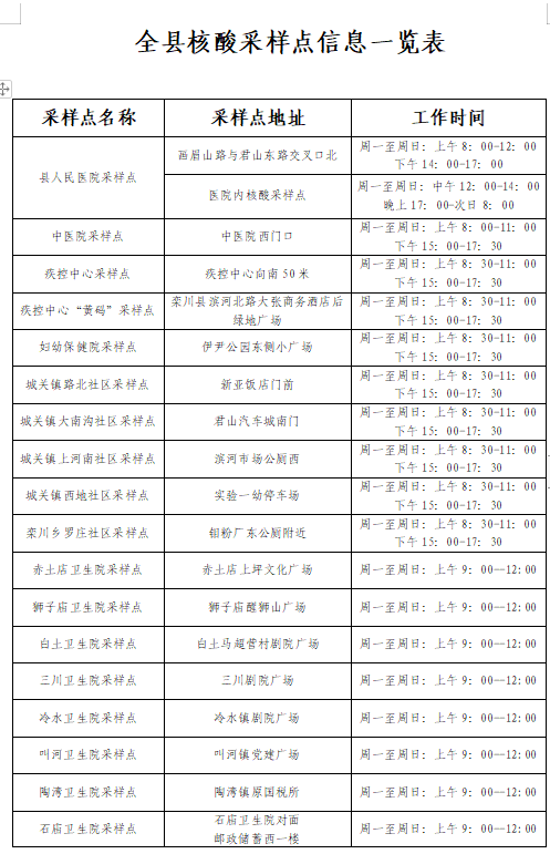 ⑥可在栾川县免费核酸检测点提前检测,全县共设置23个核酸采样点,其中县城区10个,县城区域以外的13个乡镇各设置1个(采样点信息附后);县人民医院采样点提供24小时核酸采样服务。免费检测点分布如下: