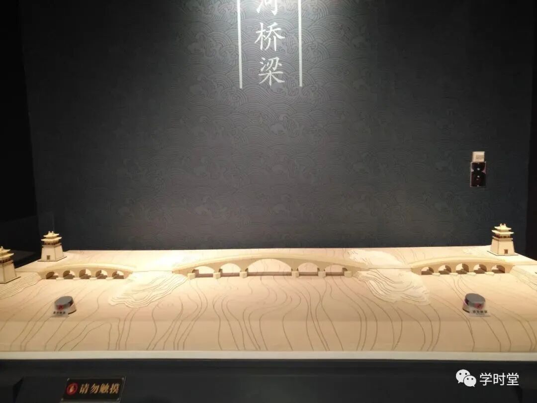第三个我们看到的是桥梁,这个就是洛河上的天津桥模型,天津晓月为洛阳八大景之一,现在洛阳市也在启动了天津桥的复原工程,期待天津桥的复原,重现洛阳城的七天建筑的辉煌。历史上有很多文人墨客的诗歌与此有关,比如李白的白玉谁家郎,回车渡天津。看花东陌上,惊动洛阳人。