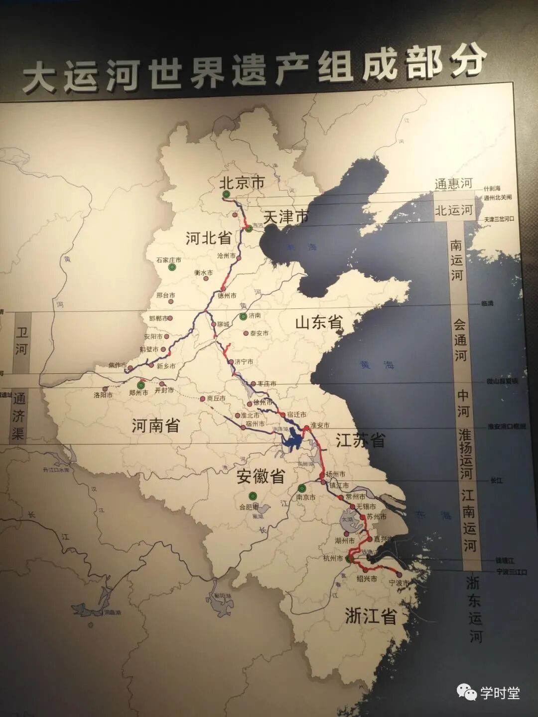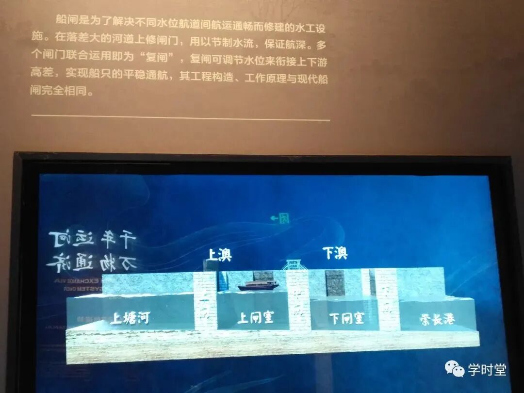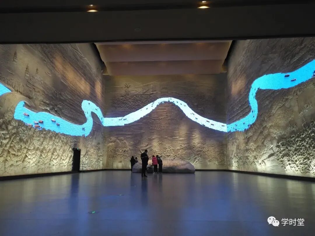 而我们看到这个LED屏就是大运河了,流动的大运河承载着船舶,将南北沟通链接起来,构成了隋唐时期的交通大动脉。