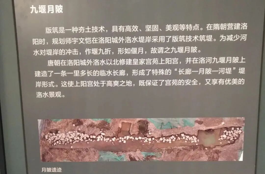 第一个是版筑,版筑是一种夯土技术,具有高效、坚固、美观等特点。将作大监宇文恺就利用这种技术筑堤坝,为减少河水对堤岸的冲击,做了九折的堰,形状像偃月,大家可以想象关老爷的青龙偃月刀那个样子,故谓之九堰月陂。