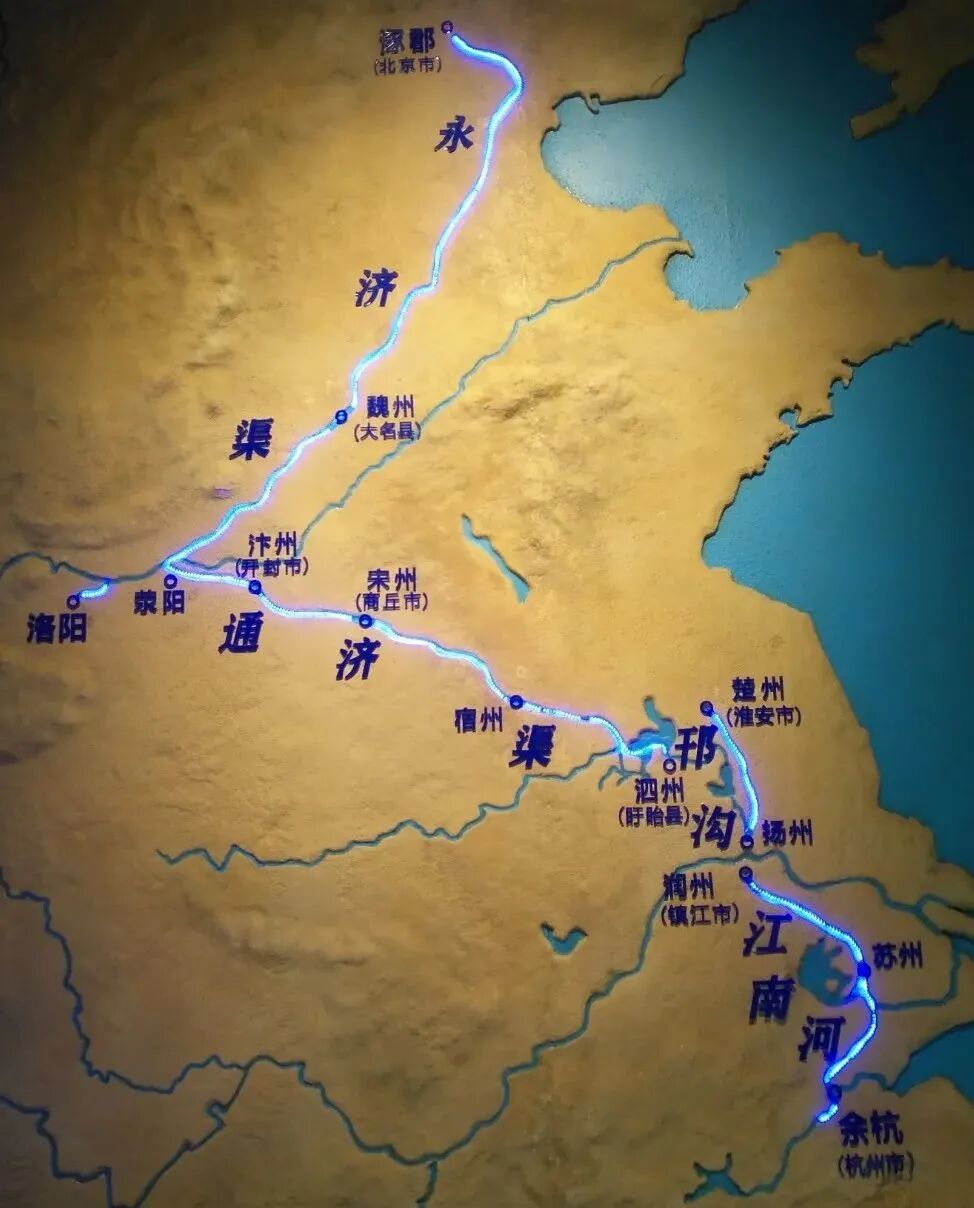 隋唐大运河在元代的时候,由于元代首都在北京,当时的水利专家郭守敬就将大运河裁弯取直,从山东到江苏,这条运河就是咱们知道的京杭大运河了,长度由隋唐大运河的2700公里降低为1800公里。