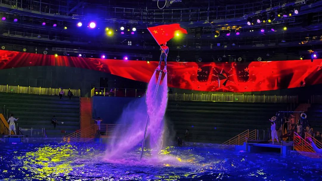 海陆展演,搭配炫彩的舞美效果,一场诙谐幽默的海洋大剧震撼十足。