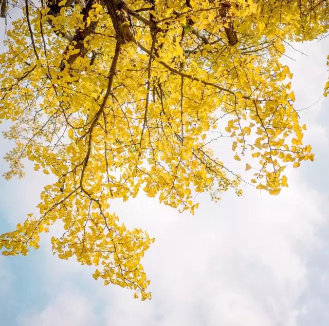 穿过一家又一家的农户,寻觅着呈现金黃的银杏树,能发现一棵其实并不难,但想找到连成片的树林实在不易,不过在挂黄的银杏树下仰望,也能充分享受到秋色的意境,叶片密密麻麻,象千万把金色的扇子布满树梢,又仿佛是千万枚金饯挂上枝头,风吹摆动,宛如一群金色蝴蝶在飞舞。
