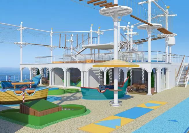 专门设计的绳索挑战道,位于邮轮上层。适于青少年和成人,体验一场不同寻常的海上绳索挑战。