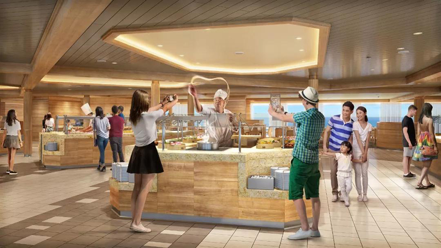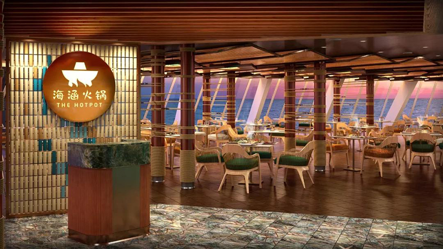 这不,海洋光谱号在帆船自助餐厅内开辟了独立用餐区域,为火锅爱好者们,不限量供应的新鲜肉类和海鲜,举筷蘸料这刹那间,有船尾270度无敌海景作伴。