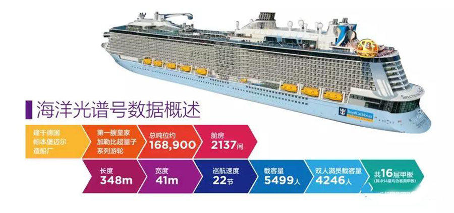 2019年是皇家加勒比国际游轮进入中国市场的第十年,自2019年以来,相继开启中国游轮市场的“大船时代”与“新船时代”,旗下在中国母港运营游轮承载客人数平均年复合增长率达26%。继量子系列的两艘全新下水游轮“海洋量子号”、“海洋赞礼号”部署中国母港并收获超高口碑与行业认可,如今,超量子系列首艘游轮“海洋光谱号”也将继续提升行业标杆,缔造中国游轮旅行的“超量子时代”。